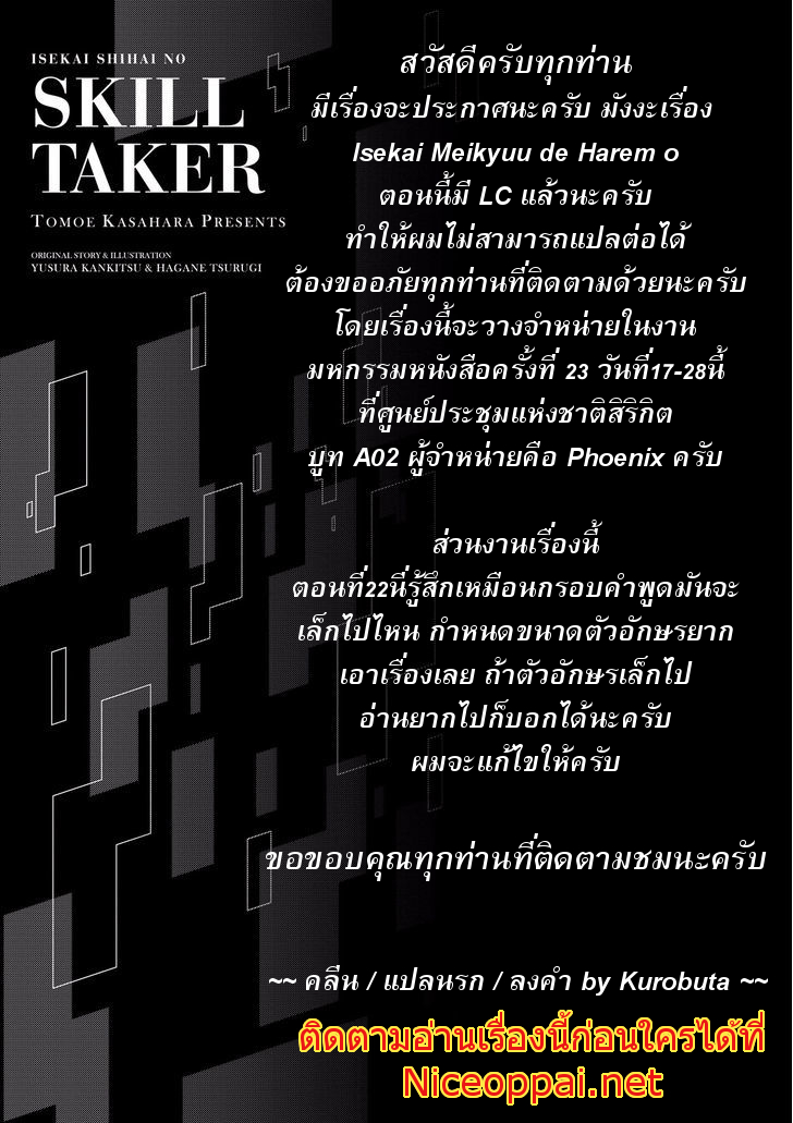 ตอนนี้คุณกำลังอ่านมังงะเรื่อง Isekai Shihai no Skill Taker: Zero kara Hajimeru Dorei Harem ตอนที่ 22 ที่