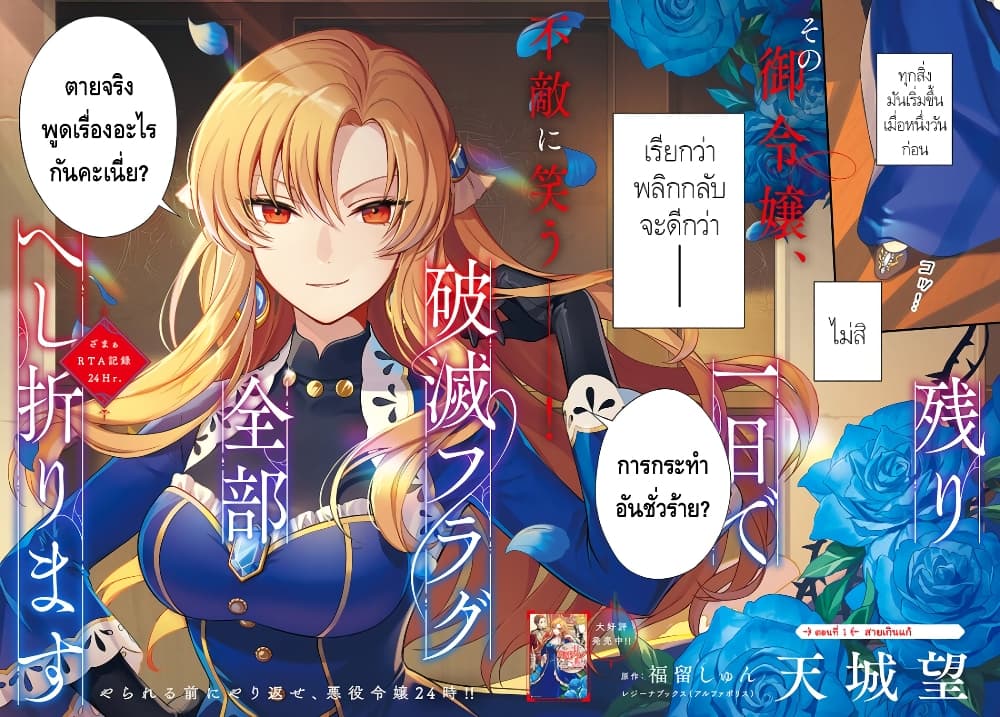 ตอนนี้คุณกำลังอ่านมังงะเรื่อง Nokori Ichinichi de Hametsu Flag Zenbu Heshiorimasu: Zamaa RTA Kiroku 24Hr. ตอนที่ 1 ที่