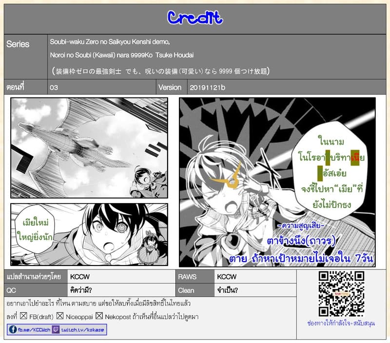 ตอนนี้คุณกำลังอ่านมังงะเรื่อง Soubiwaku Zero no Saikyou Kenshi demo, noroi no soubi (kawaii)nara 9999-ko tsuke-houdai ตอนที่ 3 ที่
