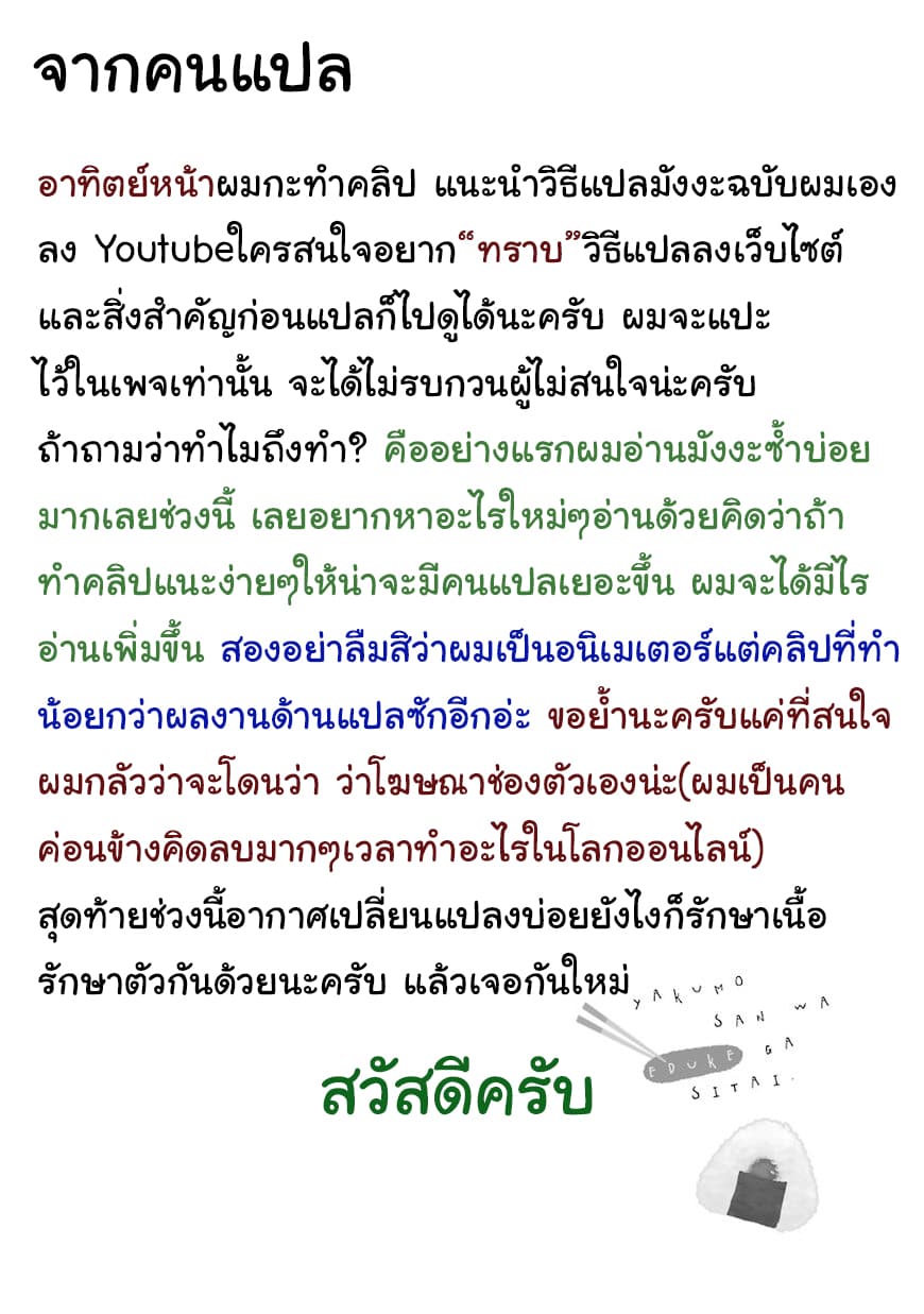 ตอนนี้คุณกำลังอ่านมังงะเรื่อง Yakumo-san wa Edzuke ga Shitai. ตอนที่ 17 ที่